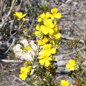 This small, sprawling shrub produces masses of bright yellow, round, fluffy blooms that attract bees and other native pollinators. It makes an attractive addition to native gardens, and its slightly spiky branches mean it’s best planted where contact is limited – or it can even be used as a natural barrier.